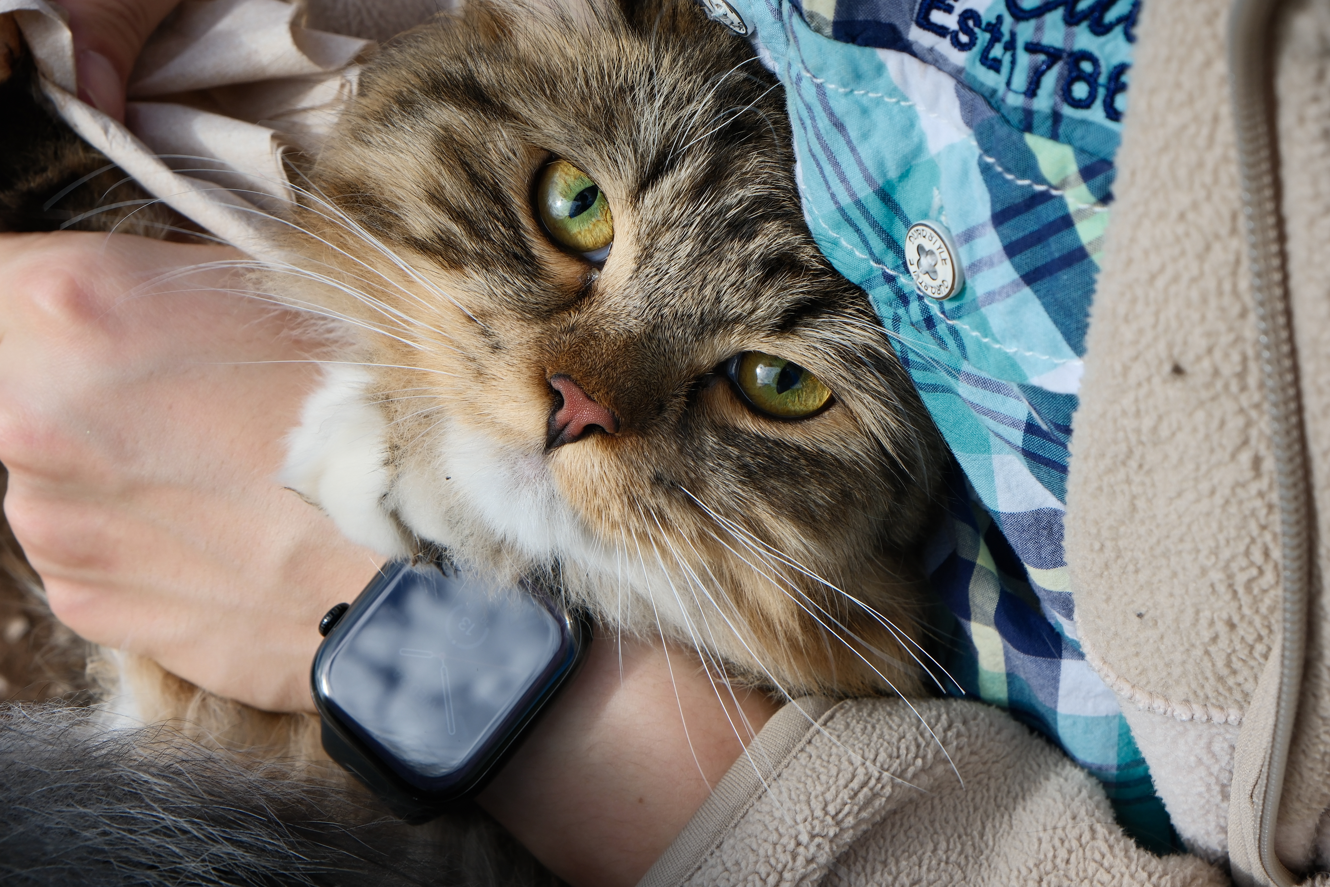 猫会听你讲话。无论几时到家,我都会和猫打招呼「早上好,宝宝」。平日训练习惯大声夸她,不知因果哪个在先,她对于言语鼓励的反馈是很高的。我若想自言自语的时候,猫正好在旁边,就可以把她抓过来谈个心。这是非常方便的。